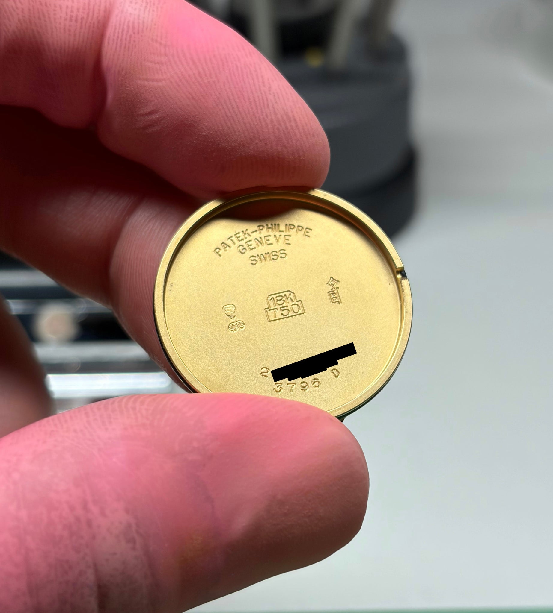 Verder is deze Patek Philippe Calatrava voorzien van de zogeheten 18K geelgouden Clous de Paris, ook wel hobnail bezel. De benaming Clous de Paris is Frans en betekent letterlijk “Parijse spijkers”, een motief dat zijn oorsprong vindt in de klassieke Franse decoratieve kunst. De Engelse term hobnail verwijst naar de kleine nagelkopvormige structuur van het patroon, vernoemd naar spijkers die vroeger in schoenzolen werden gebruikt.
